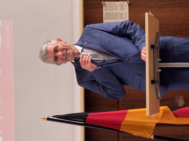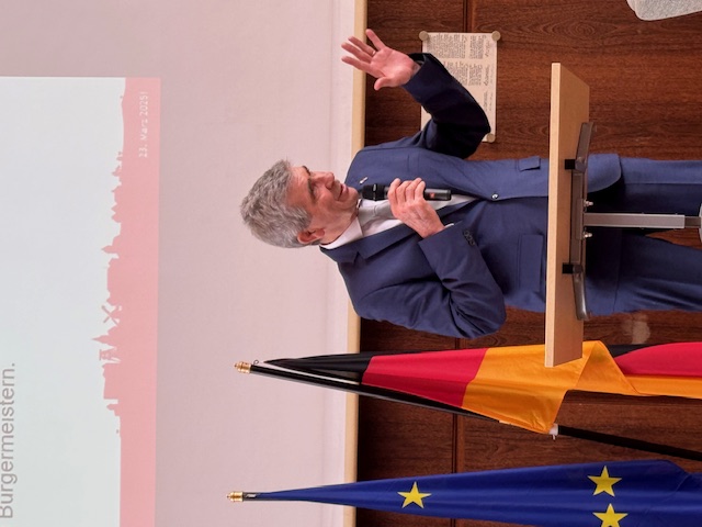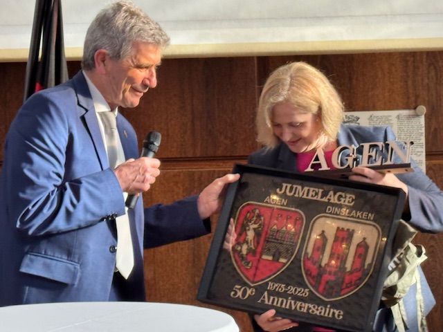 „Heute stehen wir hier nicht allein im Gedenken. Wir sind zutiefst dankbar, dass unsere Freundinnen und Freunde aus Agen an unserer Seite sind, um gemeinsam zu erinnern und zu mahnen. Diese Städtepartnerschaft zeigt uns allen, besonders unseren jungen Menschen, dass Versöhnung möglich ist und dass die Kräfte des Friedens stärker sind als die des Krieges.“ — Bürgermeisterin Michaela Eislöffel